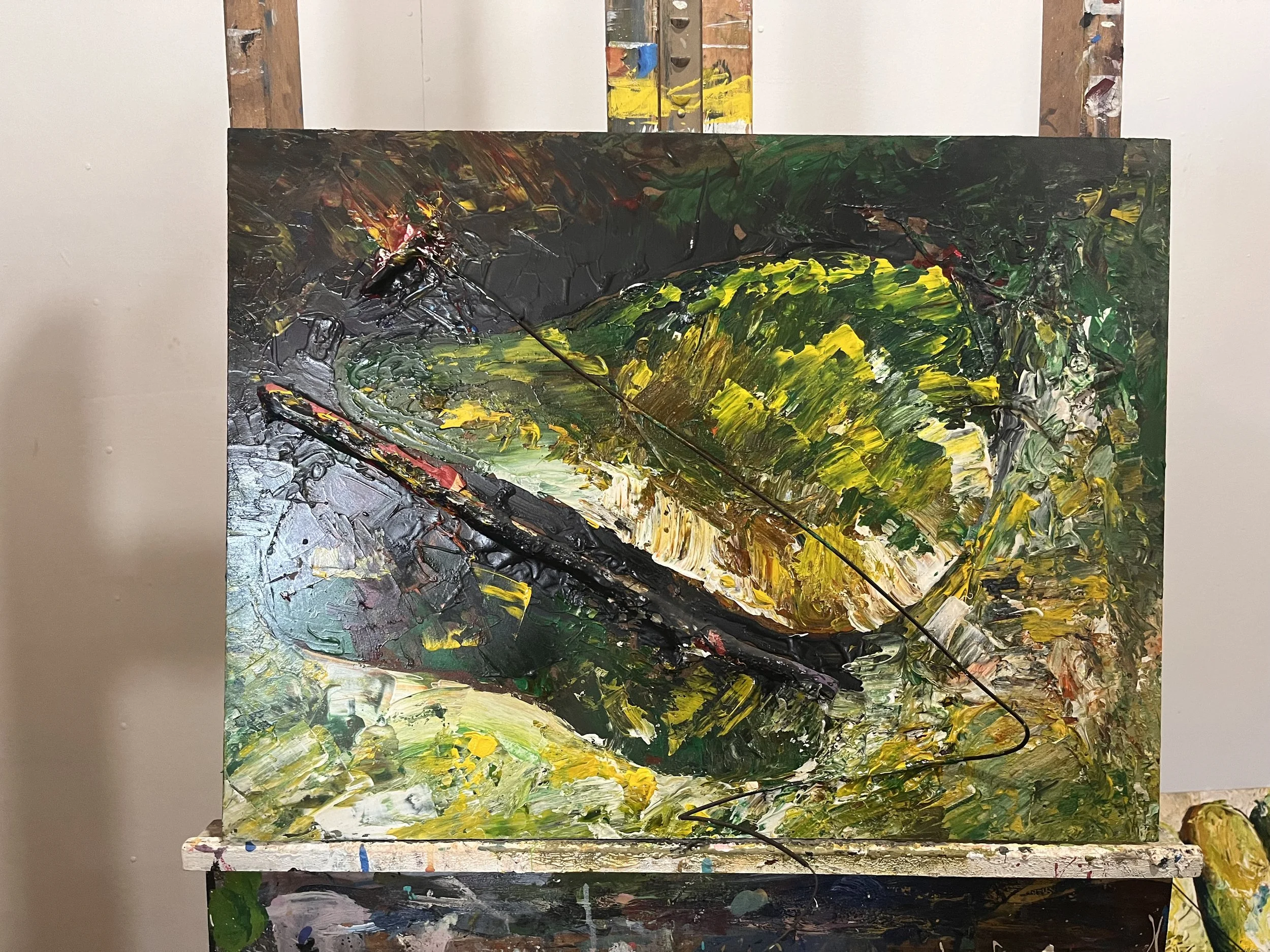 Mixed Media - acrylic paint, latex paint, metal, power cord, skewers